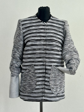 Originálne sako z kolekcie MONOCHROME, vytvorené s precíznosťou a vášňou. Elegantný strih bez goliera, nazberané rukávy. Zapínanie na 5 mini stláčacích gombíkov.Výrazná saténová podšívka.